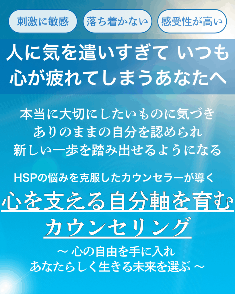 そんな繊細なあなたが楽に生きるために、“他人軸な自分”を卒業し、あなたらしく生きる未来を選びませんか?